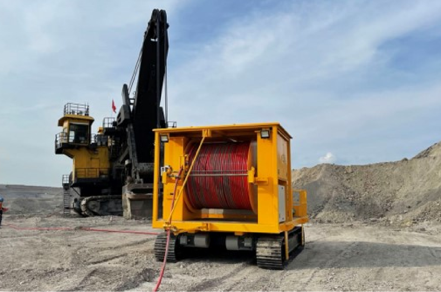 It’s a Sautonomous vehicle automatic follow the rope shovel to manage the trailing cable.