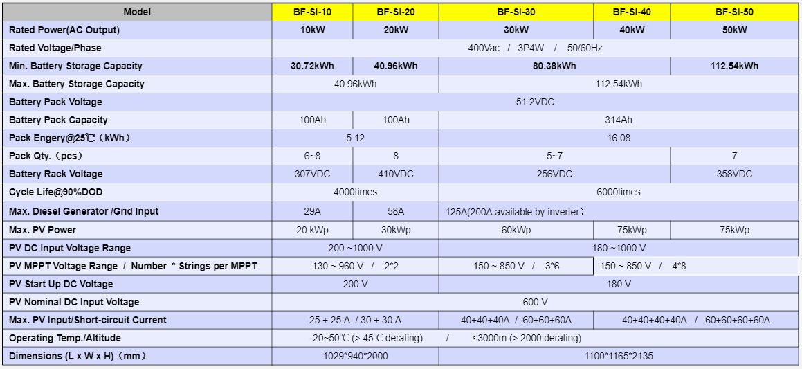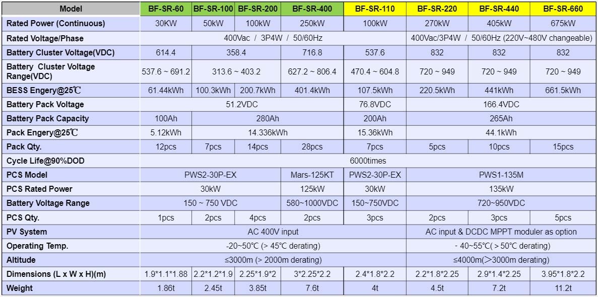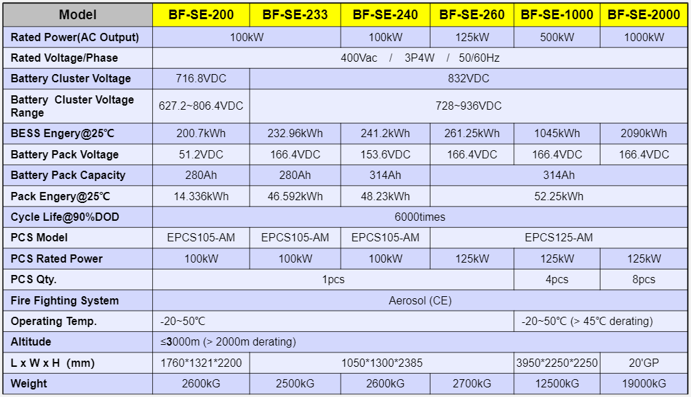 BF-SE is a new type of safe battery energy storage system with a modular design that includes batteries, PCS (energy storage converter), control system, HVAC, fire protection and other components, and can be connected to external photovoltaic power plants and the power grid.Mainly used in commercial and industrial scenarios.