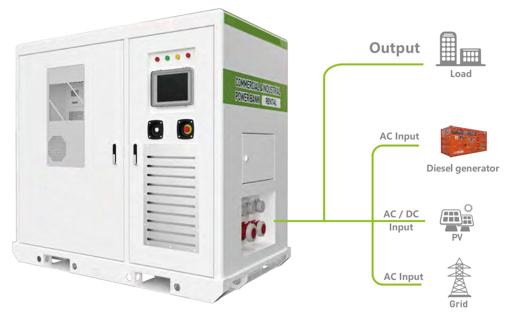 1. The diesel generator and the grid are able to charge the battery and taking load through a socket connection.