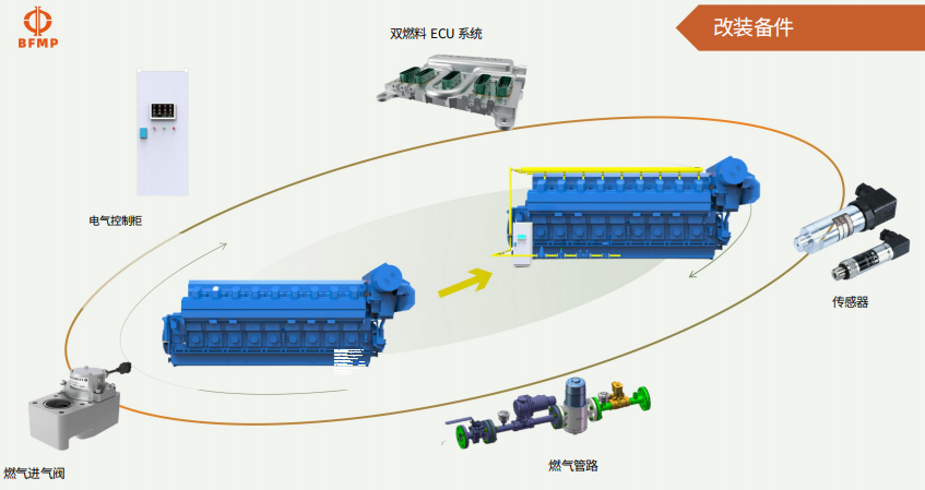 此外,北方船舶的油气转换解决方案还包括完善的电气控制柜、燃气管路、进气阀和传感器等组件,确保整个系统的稳定运行。公司为客户提供从发动机工厂调查、解决方案设计到现场安装调试的一站式服务,确保转换过程的顺利进行。