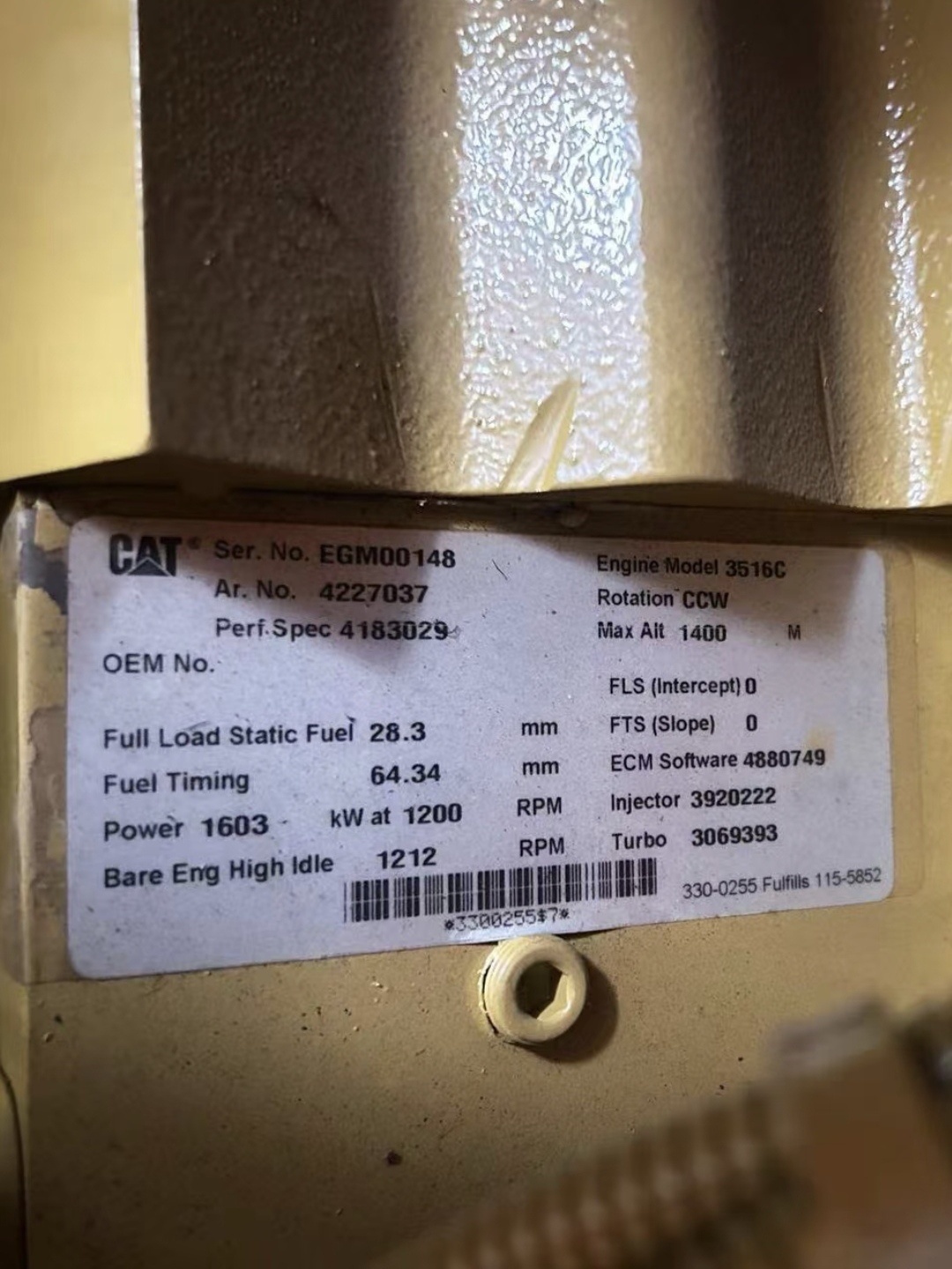 CAT 3516C发电机组5台待售,2016年产,可用于陆用电站,具体参数详情如下: