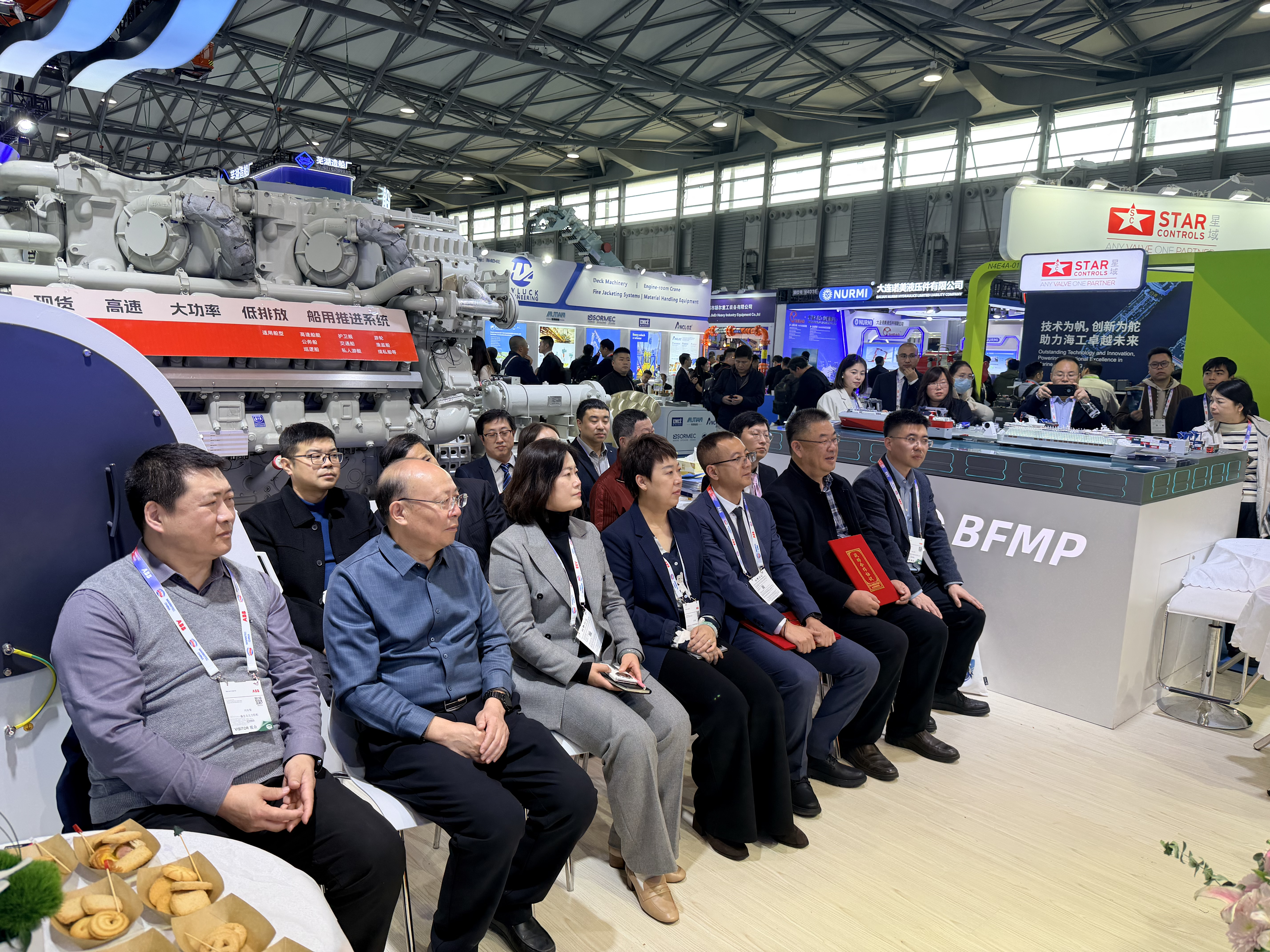 2025年12月3日,上海国际海事展N4E5A馆,气氛庄重而热烈。在众多行业同仁的共同见证下,秦皇岛北方船舶机械进出口有限公司与哈船冰轮(山东)新能源动力科技有限公司战略合作签约仪式圆满举行。受邀出席此次签约仪式的有哈船冰轮总经理骆万亮、技术部长曲宏伟、管理部长梁庆爽、生产部长赵圣强,全体北方船舶参展人员共同见证了这一重要时刻。此次签约标志着双方在绿色航运与新能源船舶动力领域正式开启深度协同、融合发展的崭新篇章。